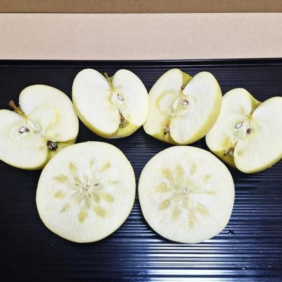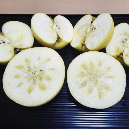 見た目は黄色い果皮に陽光面にほんのりと赤みが色づいて、ずしっとくる重さが特徴です。また、口に含むと蜜を含んだ果汁でジューシーさがほとばしる魅力的なりんごです。「きみと」は2016年生まれの比較的新しい品種なので、希少価値の高いりんごとして贈答用でも喜ばれると思います。ジューシーな食べごたえとさっぱりとした後味の印象の「きみと」をぜひ♪